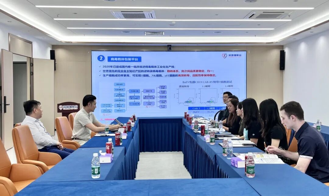 董事长助理付宇辰陪同拜访团队参观了深圳evo真人视讯智慧展厅,详细地介绍了深圳evo真人视讯在CGT领域的战略定位、创始团队背景、核心技术路线、GMP级细胞产品制备优势及人才培育体系。