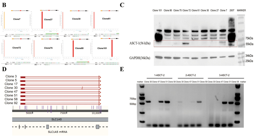 图3 HEK293T-gag-pol-ASCT-1&2-KO细胞系的构建