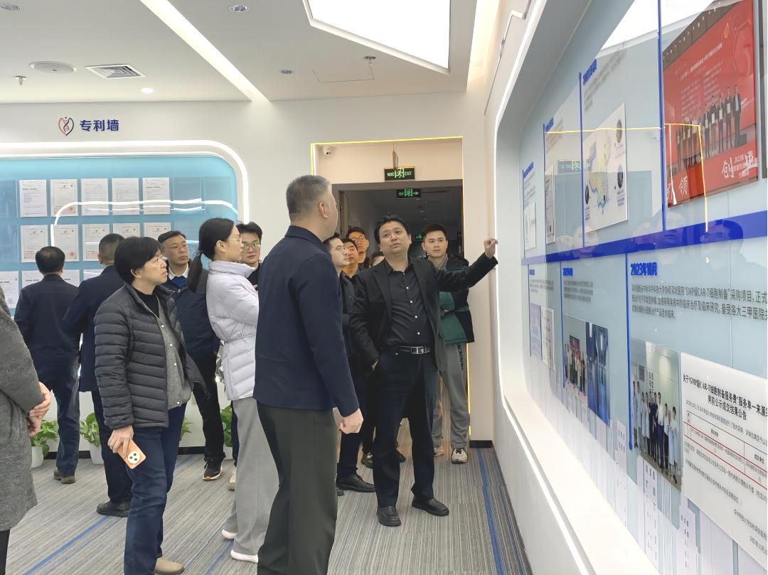 史渊源董事长陪同考察团一行参观了深圳evo真人视讯的智慧展厅及生产车间、研发实验室的可视化数据大屏,分析到深圳evo真人视讯在细胞与基因治疗平台建设、人才培育、研发赋能及临床治疗方面取得的成绩及重大突破。